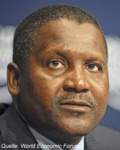 (Bildnachweise: Aliko Dangote: World Economic Forum / Matthew Jordaan; Unternehmensbilder – Dangote Website Gallery)