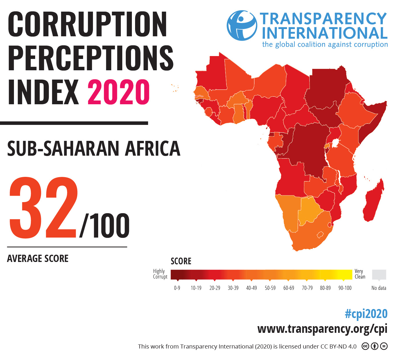 Details, Hintergründe und Perspektiven zur Korruption in Subsahara-Afrika bietet der aktuelle Bericht von Transparency International “Corruption Perceptions Index 2020“ auf den Seiten 20 und 21.